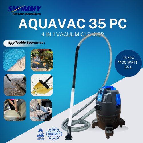 4-in-1 swimming pool vacuum cleaner for cleaning the pool bottom, walls, and water dirt quickly, practically, and efficiently.